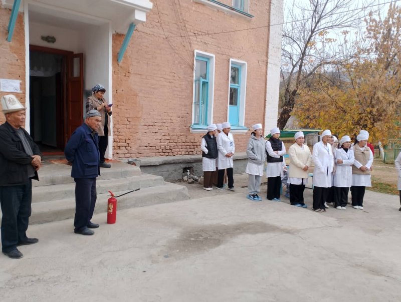 2025-жылдын 28-октябрь күнү саат 11:00 Майлуу-Суу медициналык колледжинин имаратында өрт кырсыгы боюнча шарттуу машыгуу өткөрүлдү.
