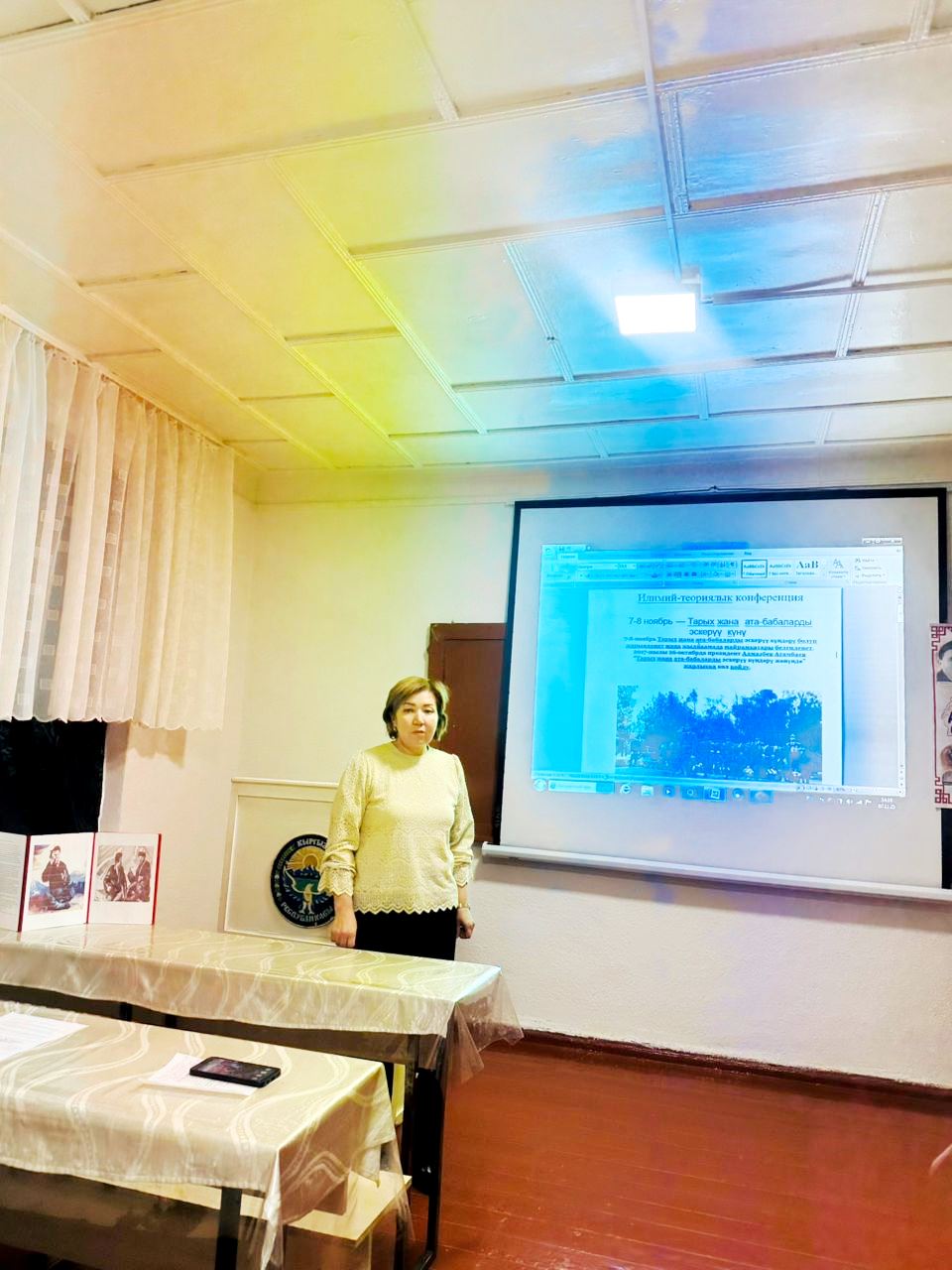 -Ата-Бейит мемориалдык комплекси тууралуу маалыматтар айтылды.Конференциянын максаты:келечек муунга даталуу күндөрдүн маанисин, ата-бабалардын тарыхтагы орду тууралуу терең түшүнүк берүү, мекенчилдикке тарбиялоо. Айтылган маалыматтар эгемендүүлүккө ээ болгондон кийин изилдөөлөр жүргүзүлүп, бүгүнкү күндө тарыхый чындыкты баяндаган тарыхтын актай барактарын толтурган маалыматтарды берүү менен , жаштардын тарыхый көз караштарын калыптандыруу.