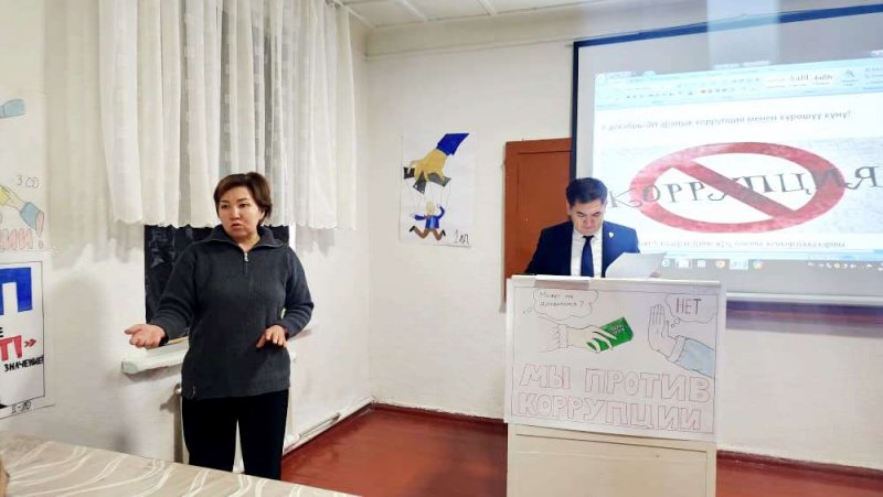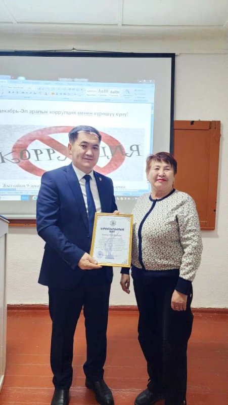 Окуу жайдын директору Батырбекова З. “9-декабрь эл аралык коррупцияга каршы күрөшүү” күнүнө” карата иш-чарага шаардык прокуратуранын прокуроруна көрсөткөн колдоосуна ыраазычылык билдирди.
