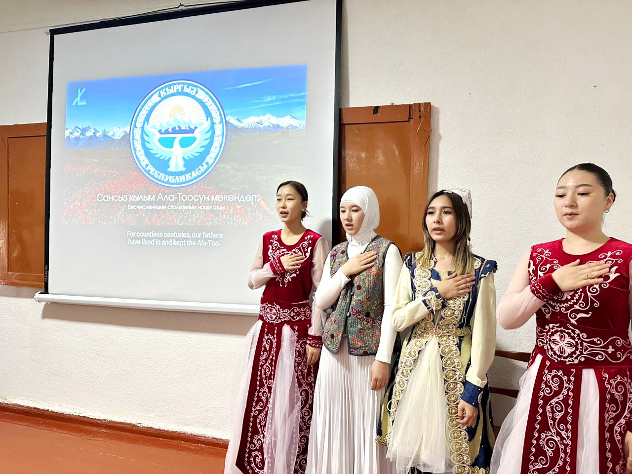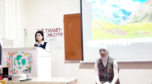 Биринчи курстун студенттери майрамдык программага активдүү катышып, эне тилибизде ырларды көркөм окуп беришти жана тилдин мааниси менен тарыхы тууралуу мазмундуу баяндамалар жасашты. Ошондой эле Манас эпосунан үзүндүлөрдү айтып, улуттук маданиятыбыздын байлыгы менен көркөмдүгүн даңазалашты. Бул чыгармалар көрүүчүлөрдүн өзгөчө кызыгуусун жаратты.